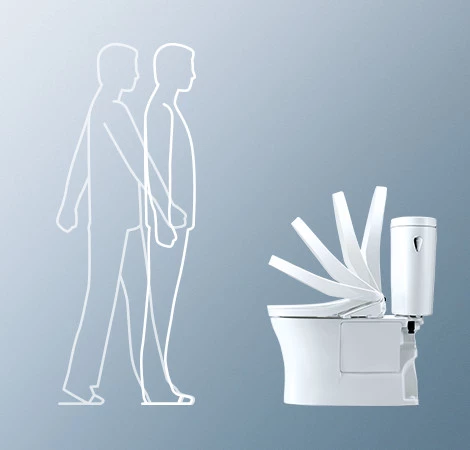 人の動きを検知して、便ふたが自動で開閉するトイレの思いやりを感じる機能です。開閉するためにかがむ必要がなく、腰への負担を軽減でき、便座に触れる必要もありません。また締め忘れがないので、暖房便座の保温性が高まり、節電にも効果的です。