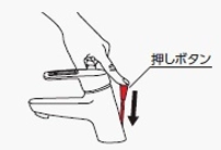 押しボタンを押すと排水栓が開き、もう一度押すと閉じる。押しボタンは蛇口本体に同梱されています(排水金具は別売り)。