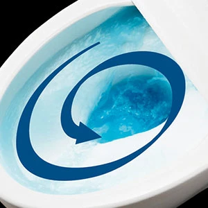 強力な水流が便器鉢内のすみずみまで回り、少ない水でもしっかり汚れを洗い流し、いつでもキレイなトイレに。