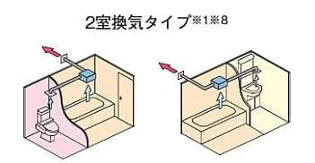 • ※1:2室換気タイプは1室換気タイプとして使用できません。