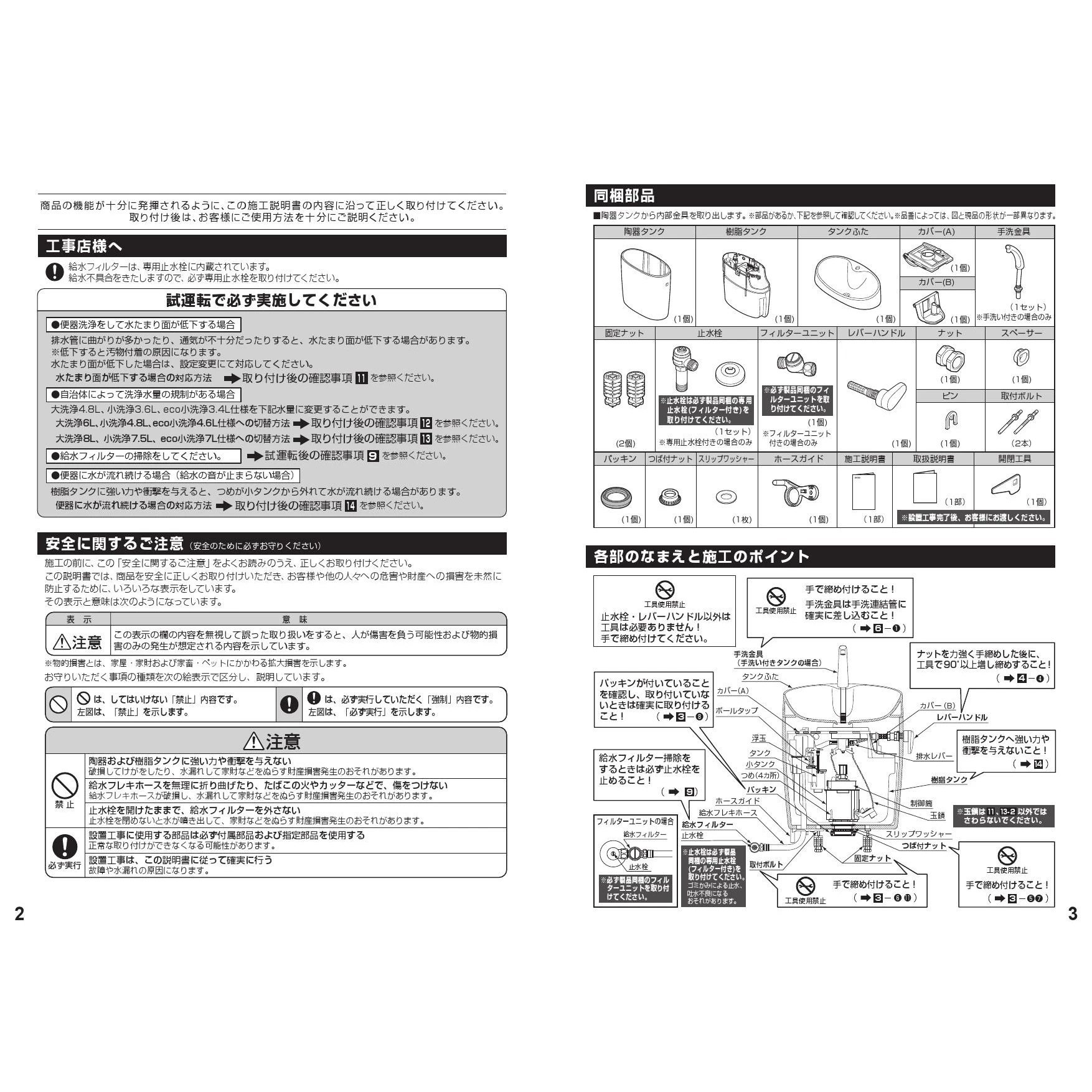SH400BA 密結タンク(ピュアレストEX)施工説明書