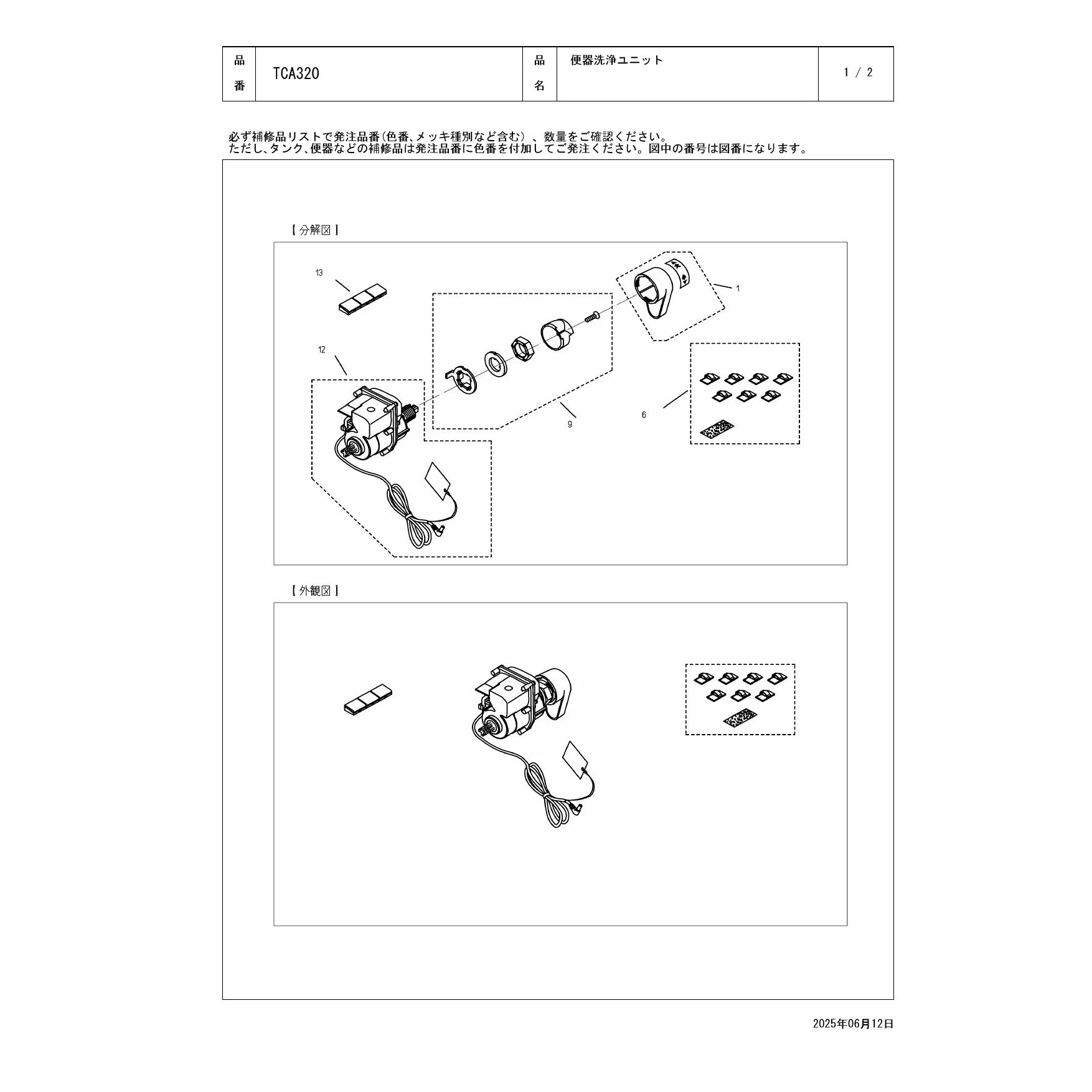 TCA320 便器洗浄ユニット分解図