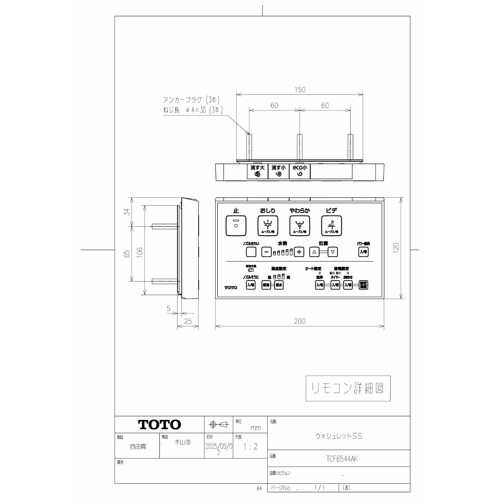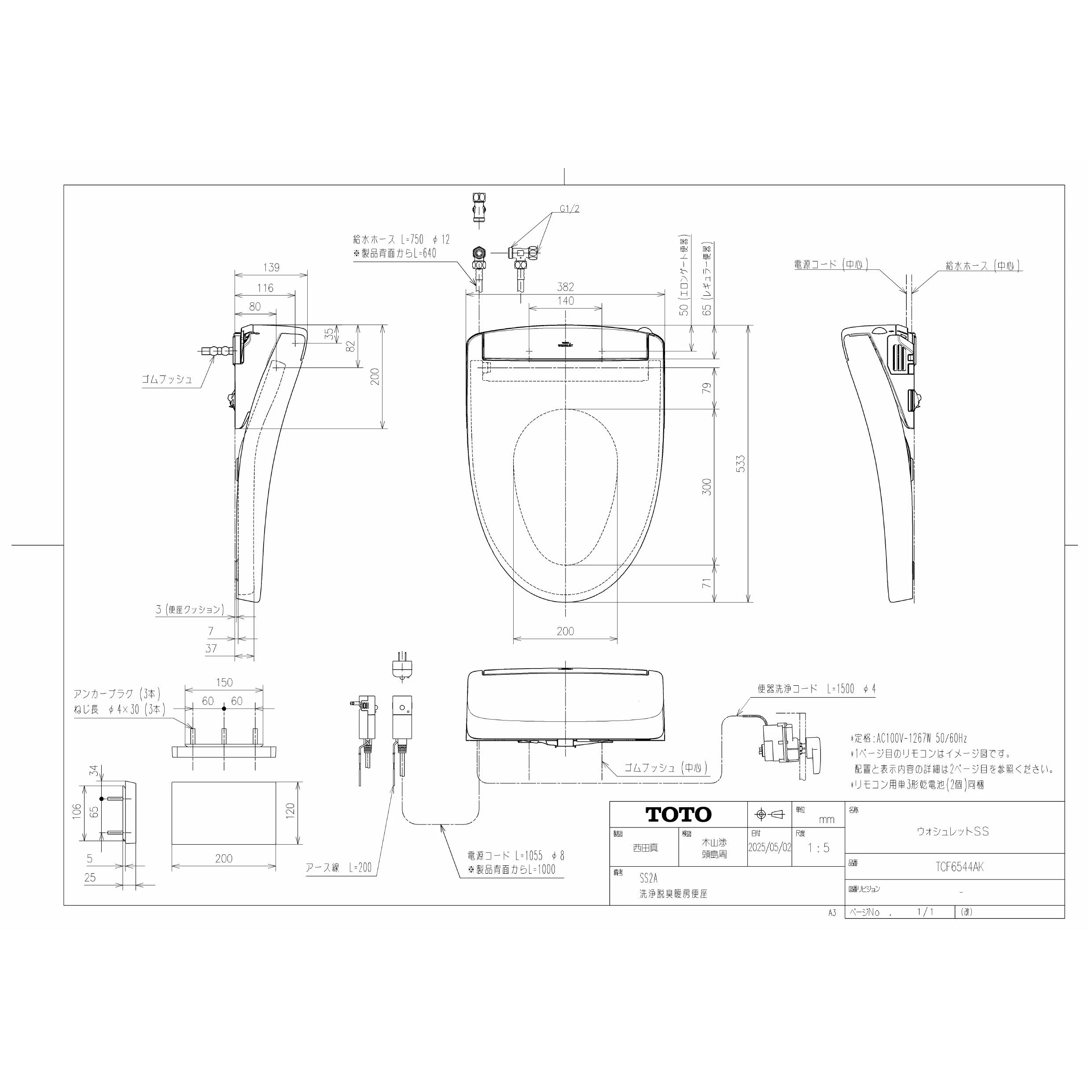 TCF6544AK ウォシュレットSS商品図面