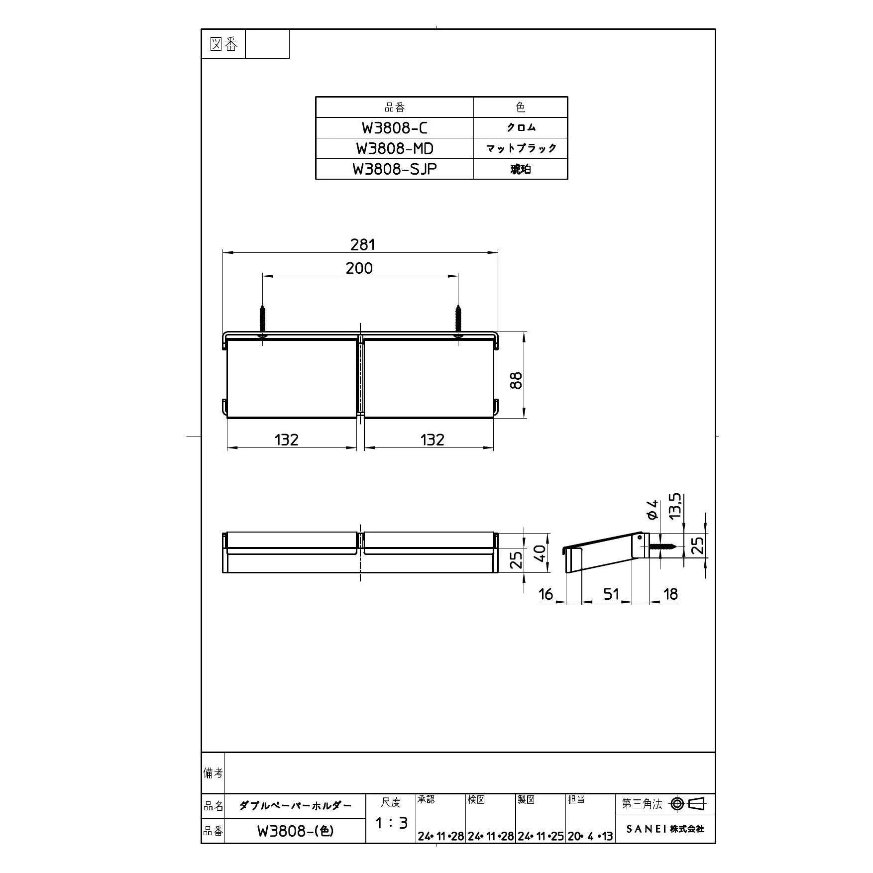 住宅設備のプロストア ダイレクト ホーム SANEI (サンエイ) インテリア・アクセサリー ペーパーホルダー W3808-SJP 図面・説明書 SANEI W3808-SJP 商品図面 各種図面のご利用については 免責事項をご確認の上ご利用ください。 W3808-SJP SANEI(サンエイ) ダブルペーパーホルダー 32.0%OFF 価格 ¥33,660 商品図面 このデータは2025年11月 現在のものです。 商品図面の一括ダウンロード SANEIカスタマーセンター SANEIお問い合わせ SANEIトップページフリーダイヤル:0120-06-9721 受付時間:月~金 9:00~17:00(土日祝、夏季休暇、年末年始を除く) ダイレクトが選ばれる理由 プロストア ダイレクトは、一流メーカー住宅設備機器のトイレ・水栓・給湯器などを卸値価格で販売している会社です。 リフォームに携わる毎日忙しいお客様(一人親方の業者様や工務店様、マンションの管理をしている方)の時間コストを圧縮する(手早くご購入できる)ために、取扱商品35,000点、在庫商品2,300点以上の品揃え!商品仕様などの情報源も支援出来る様なショップを目指しております。 住宅設備機器でお悩みの方は プロストアダイレクトにご相談ください! また、土日、祝祭日、年末年始、夏季期間は翌営業日以降の対応となりますのでご了承ください。 お問い合わせフォーム 平日10時までの注文で在庫商品なら当日発送! SANEI (サンエイ) インテリア・アクセサリー ペーパーホルダー ご利用ガイド キャンセルについて ご注文後のキャンセルは一切承りかねます。品番ご確認の上ご注文ください。 送料について 通常配送料全国一律870円!お買い上げ合計30,000円以上で、通常配送料無料! お支払いについて 代金引換・銀行振込・3Dセキュア対応のクレジットカードがご利用頂けます。 荷受け時の注意事項 荷受け時に必ずお届けの品番とご注文品番に相違がないかをご確認ください。 お届けについて 当店在庫商品の場合、AM10:00までのご注文(ご入金確認)にて当日発送。 返品・交換について 商品の相違や不足が認められる場合、到着後7日以内にご連絡ください。 全商品メーカー保証あり 当店の取り扱い商品は、メーカー正規品の新品につき、メーカー保証が適用されております。 営業日・営業時間について 10:00~18:00(土日祝除く)。時間外のお問合せ・御注文は翌営業日より順次対応。 SSLについて 当店を安心してご利用していただける様、RapidSSLを導入しております。 商品検索 お探しの商品が見つからない場合は、商品名や品番よりお探し頂けます。 検索 住宅設備のプロストア ダイレクト ホーム SANEI (サンエイ) インテリア・アクセサリー ペーパーホルダー W3808-SJP 図面・説明書
