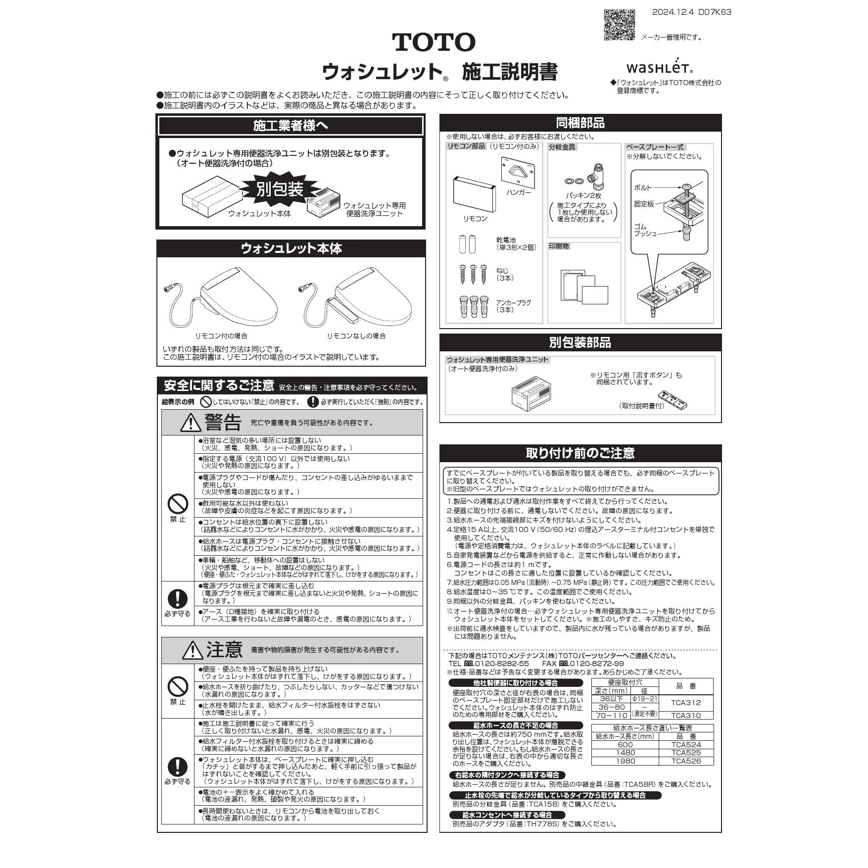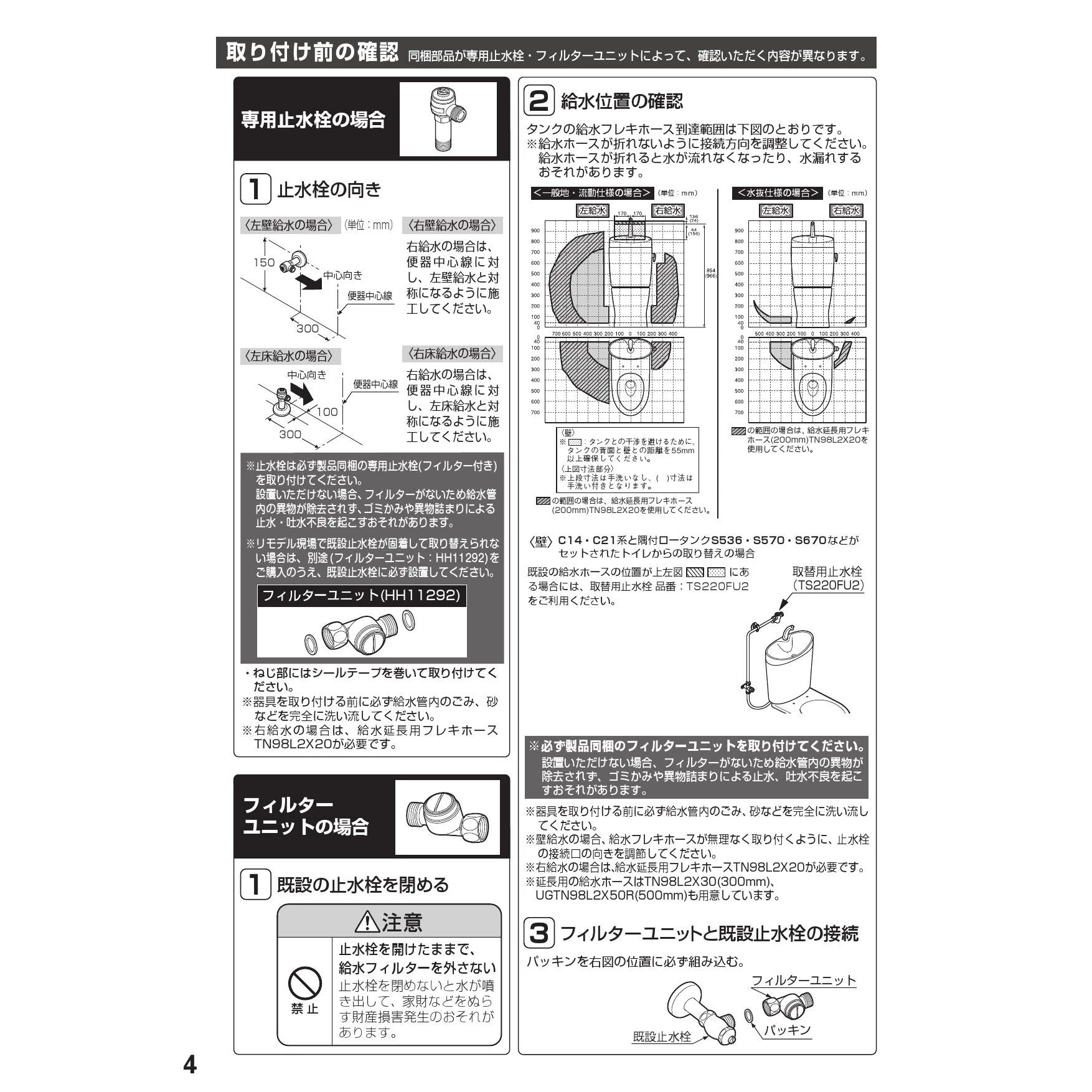 SH335BA 手洗付密結タンクピュアレストEX施工説明書