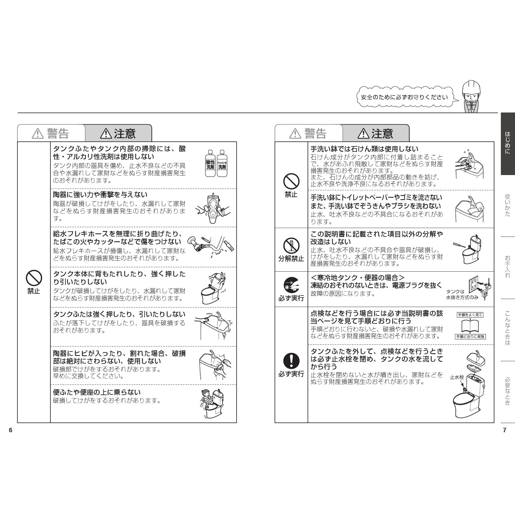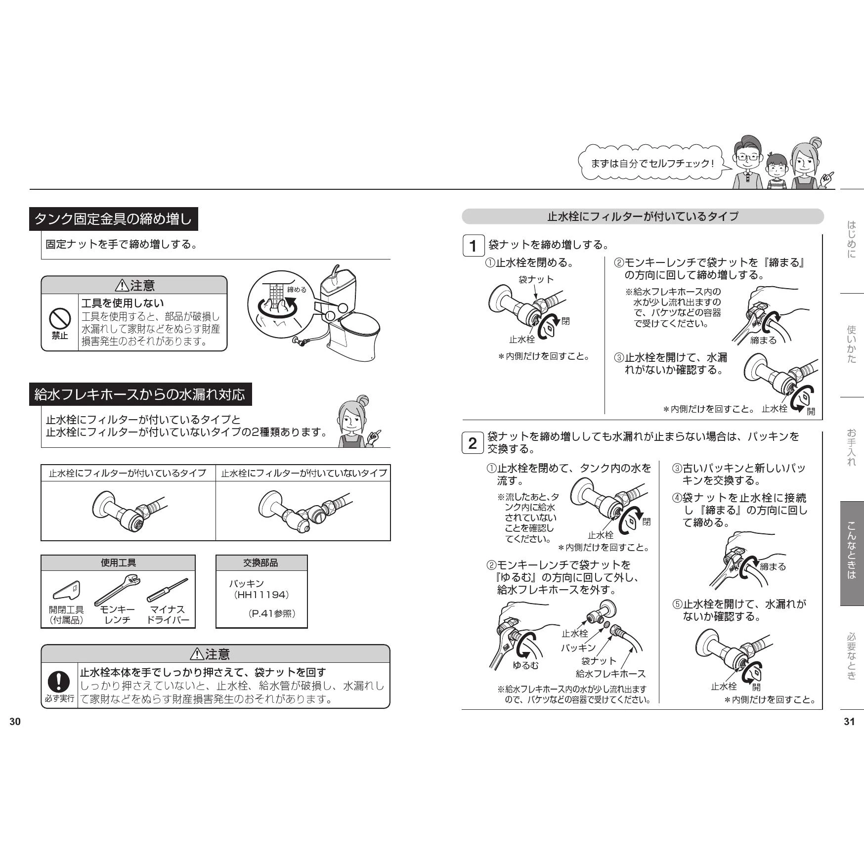 SH335BA 手洗付密結タンクピュアレストEX取扱説明書