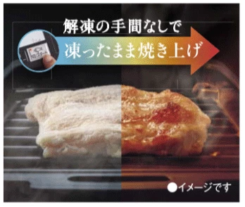 進化したIH&遠赤Wフラットラクッキングリルは冷凍保存した食材を手間なくスピーディに焼き上げる「凍ったままIHグリル」機能を搭載。