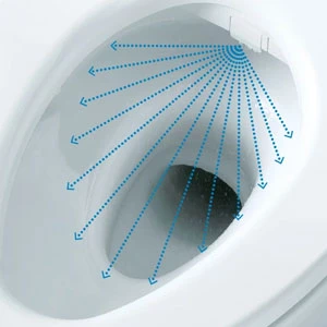 TOTO スワレットに水を流すことによりボウル面を洗浄するように流れますので、 一般的な水洗洋風便器と同様の清潔性を保持しながらご使用いただけます。