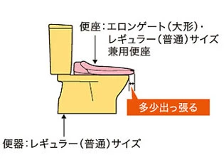 | 便座サイズ | エロンゲートサイズ(大形)・レギュラーサイズ(普通)兼用タイプ |